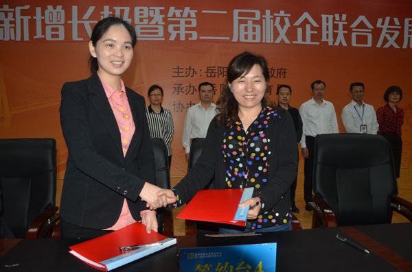 在岳阳市第二届校企联合创新发展大会上,王玉梅校长与岳阳红乔旅游投资管理有限公司人力资源部招聘经理钟惠代表校企双方签订了联合创新发展协议书。在参会院校展厅湘北女校展位前,观展的本地企业高管对湘北女校的办学特色及其毕业生的专业技能和综合素质,表示出浓厚的兴趣和合作意向。王玉梅、黄来珍等校领导还在展厅现场,分别与观展的企业高管们就合作意向进行了洽谈和签约活动,并一起合影留念。(图文 徐爱军 5、7)
