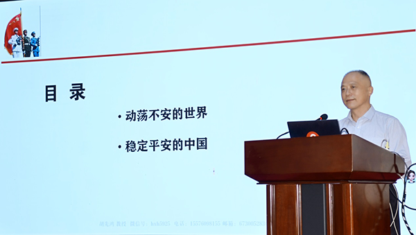胡先鸿教授围绕当前国家安全形势、国防建设的重要性以及新时代青年学生的责任与担当等关键议题进行了深入浅出的讲解。他通过详实的案例、生动的讲述,引导师生深刻认识到巩固国防、维护国家安全的极端重要性,并鼓励青年学子将个人理想融入国家发展大局,树立报国志向,增强忧患意识,提升综合素养,为祖国的繁荣稳定贡献青春力量。